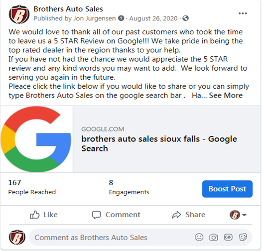 Brothers Auto Sales Has Been Serving South Dakota, Iowa, Minnesota, Nebraska and The Surrounding Area For Almost 30 Years! Please Contact Us For Your No Hassle Experience and Save Time In The Store By Starting The Process Online. We Look Forward To Taking Care Of Your Car Needs Today and In The Future! Free Carfax Report! Financing (WAC) and Vehicle Service Contract Options Available!