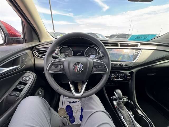 ***CLEAN CARFAX***, **LOCAL TRADE IN**, BLUETOOTH, ALL BOOKS AND KEYS, **REMOTE START**, **Back-Up Camera**, **POWER LIFTGATE**, **HEATED SEATS**, **APPLE CARPLAY/ ANDROID AUTO**, Encore GX Select, 4D Sport Utility, ECOTEC 1.3L Turbo, 9-Speed Automatic, AWD, Cinnabar Metallic, Ebony With Ebony Interior Accents Cloth, 18`` Aluminum Wheels, 2 USB Ports w/Auxiliary Input Jack, 2-Way Power Driver Lumbar Control, 4-Wheel Disc Brakes, 8-Way Power Driver Seat Adjuster, ABS brakes, Air Conditioning, Auto High-beam Headlights, Automatic temperature control, Brake assist, Cloth w/Leatherette Seat Trim, Compass, Electronic Stability Control, Enhanced Performance 6-Speaker System, Front dual zone A/C, Front fog lights, Fully automatic headlights, Hands Free Power Liftgate, Hands-Free Power Liftgate Package, Heated door mirrors, Heated Driver & Front Passenger Seats, Lane Change Alert w/Side Blind Zone Alert, Outside temperature display, Panic alarm, Power door mirrors, Preferred Equipment Group 1SD, Radio: 8`` Diagonal Buick Infotainment System, Rear Cross Traffic Alert, Red Front & Rear Bumper Protective Molding, Remote keyless entry, Ride & Handling Suspension, Safety Package II, Security system, SiriusXM Radio, Speed control, Speed-sensing steering, Split folding rear seat, Sport Front Bumper w/Red Accents, Sport Rear Bumper w/Red Accents, Sport Touring Package, Steering wheel mounted audio controls, Traction control, Wireless Apple CarPlay/Wireless Android Auto.